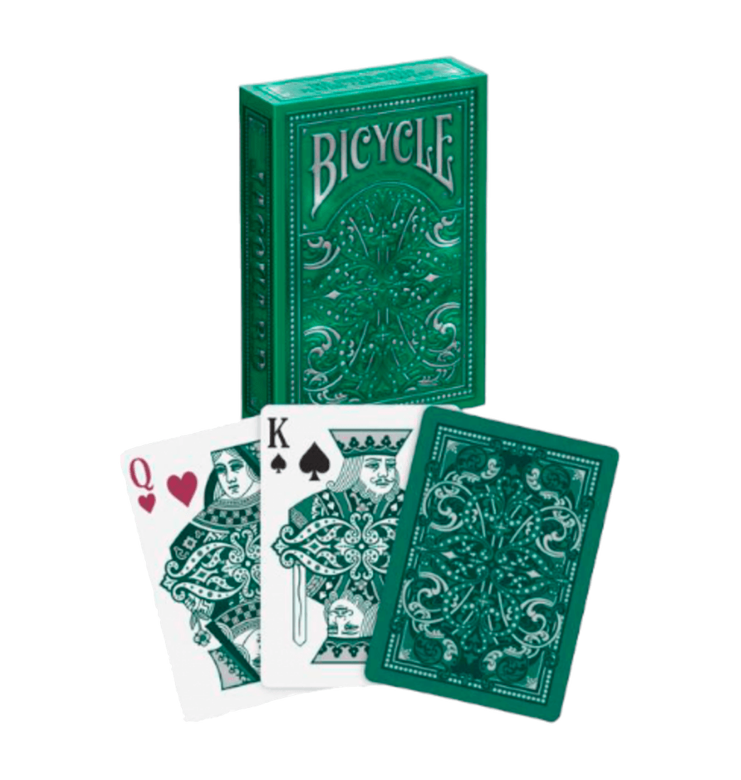 El diseño de Bicycle Jacquard se inspira en patrones complejos y ornamentados que a menudo se tejen en telas, lo que da como resultado hermosas exhibiciones. El estuche Bicycle Jacquard presenta detalles laminados en verde esmeralda y plata entretejidos creando un atractivo deslumbrante y dramático.