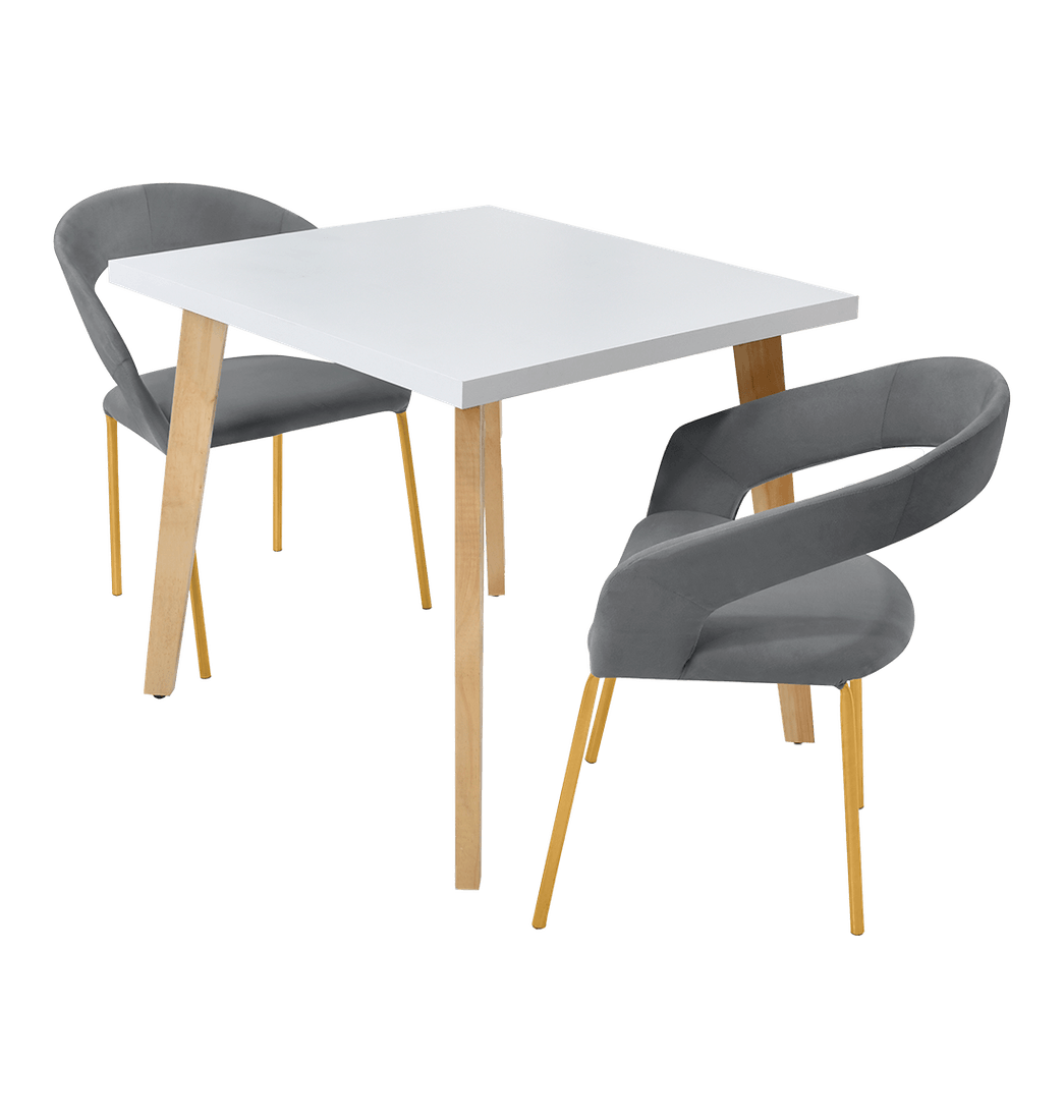 Juego de Comedor 2 Puestos Tiza Sillas Atenas Tela Gris - Hogar Venecia