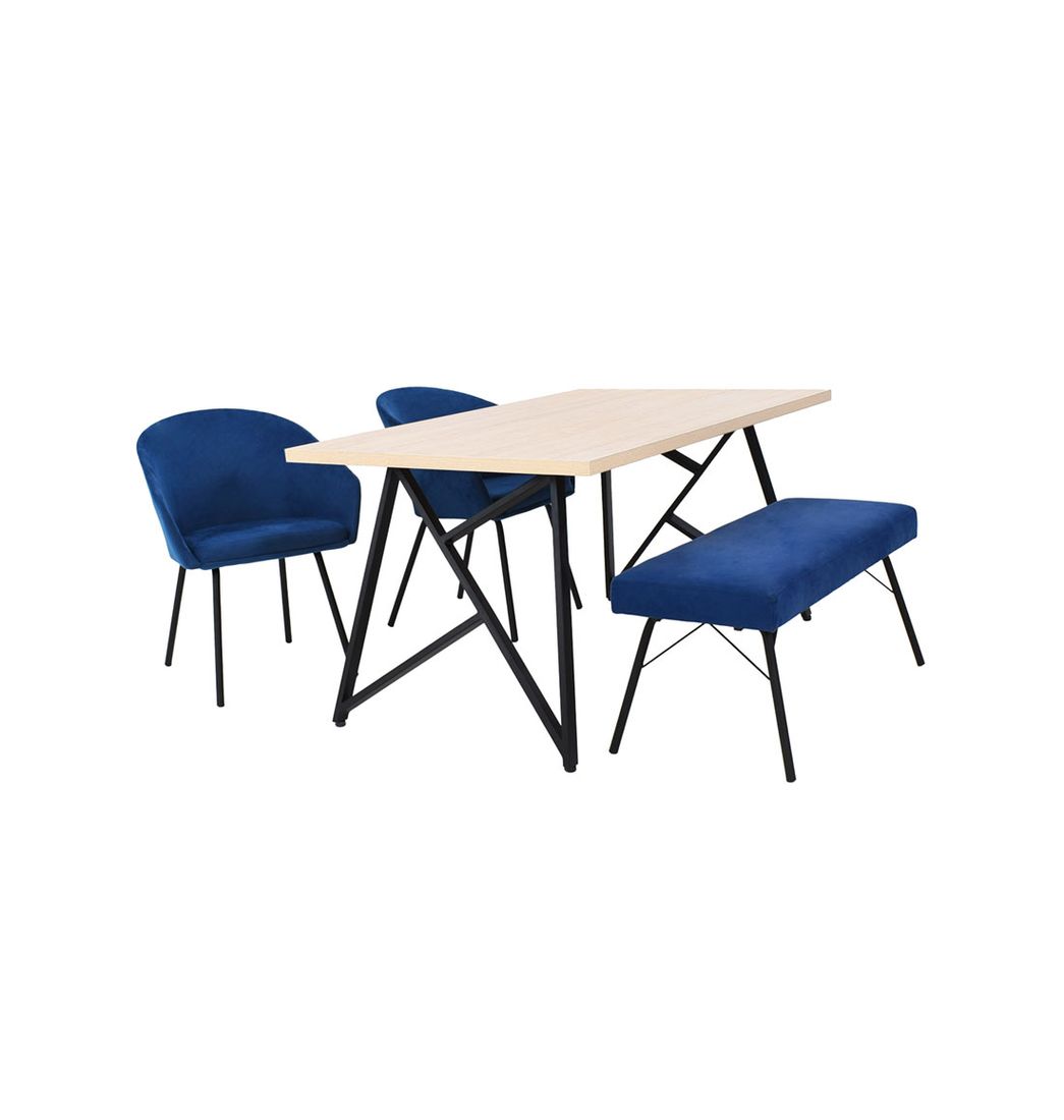 Juego de Comedor Málaga con Butaco Cadiz 4 Puestos Azul - Hogar Venecia