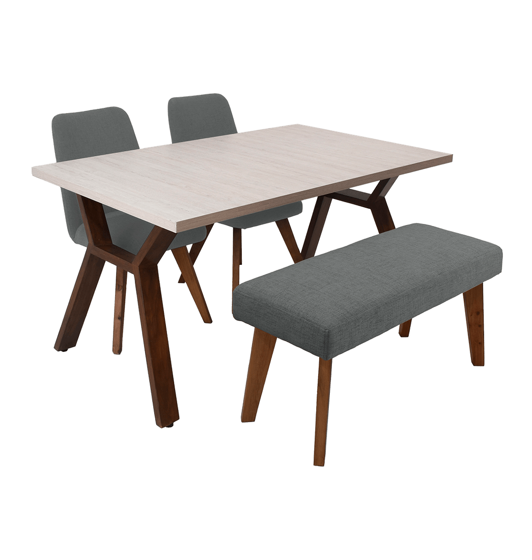 Juego de Comedor Nara 4 Puestos + Sillas Evora + Butaco Gris - Hogar Venecia