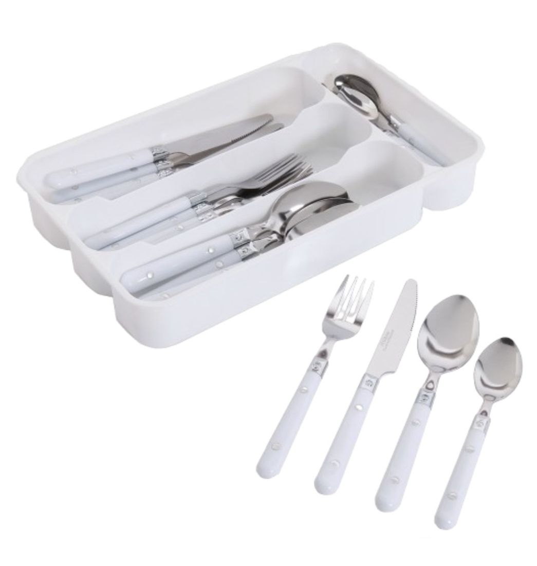 Juego de Cubiertos Casual Living y Cubiertero Blanco 24 Piezas - Gibson