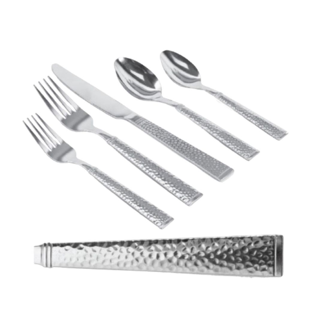Incluye: 4 tenedores de cena, 4 cucharas de cena, 4 tenedores de ensalada, 4 cucharaditas y 4 cuchillos de cena.