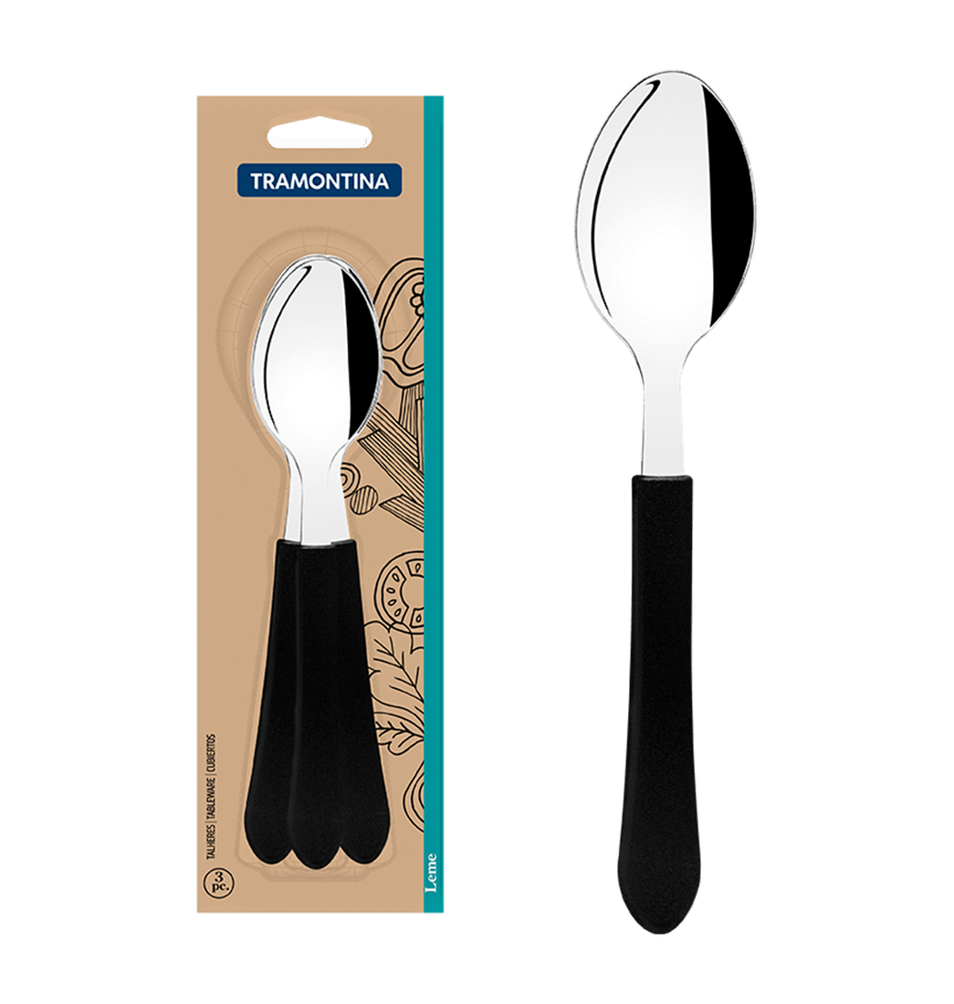 Juego de Cucharas de Mesa 3 Piezas Leme en Acero Inoxidable y Mangos Polipropileno Negro - Tramontina