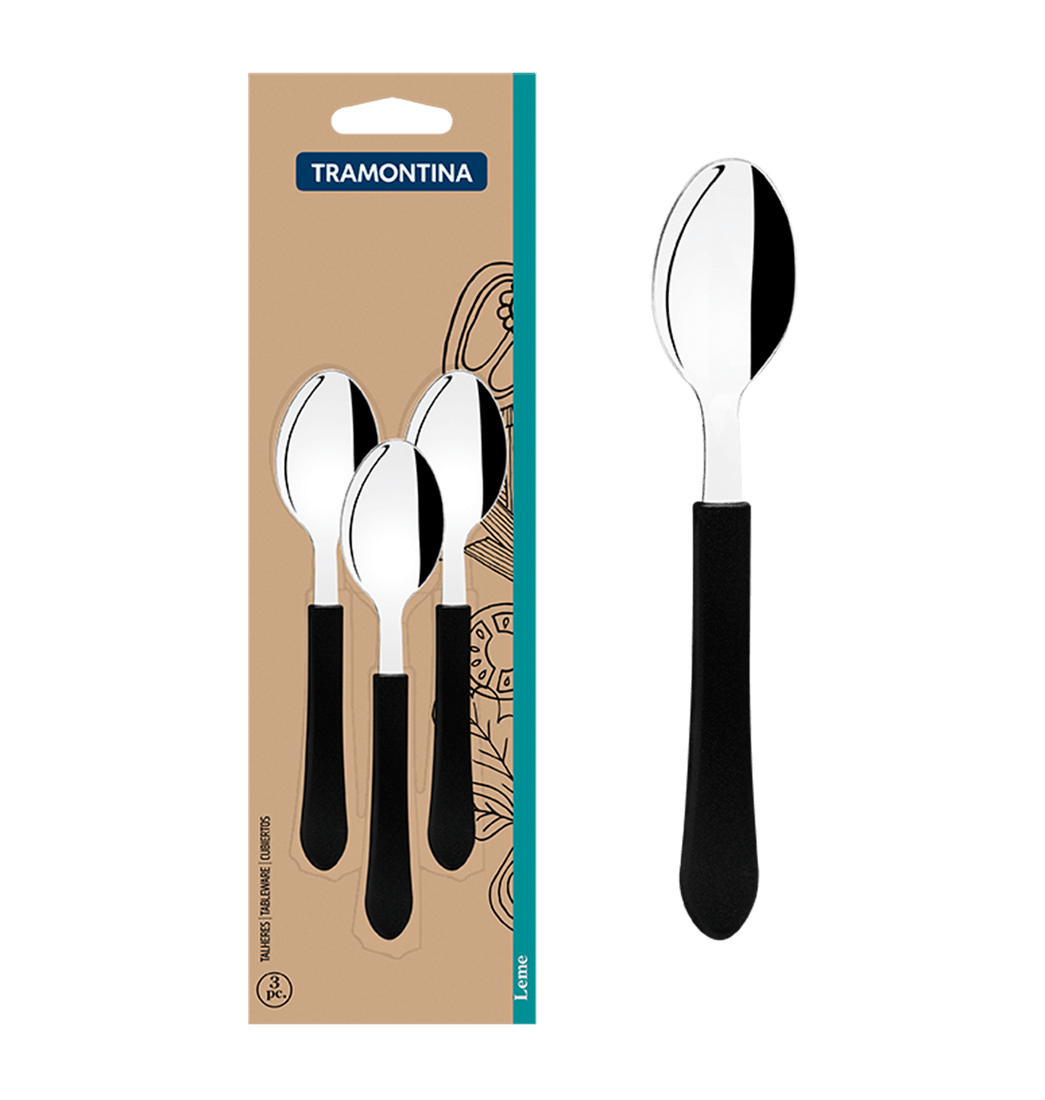 Juego de Cucharas para Té 3 Piezas Leme en Acero Inoxidable y Mangos Polipropileno Negro - Tramontina
