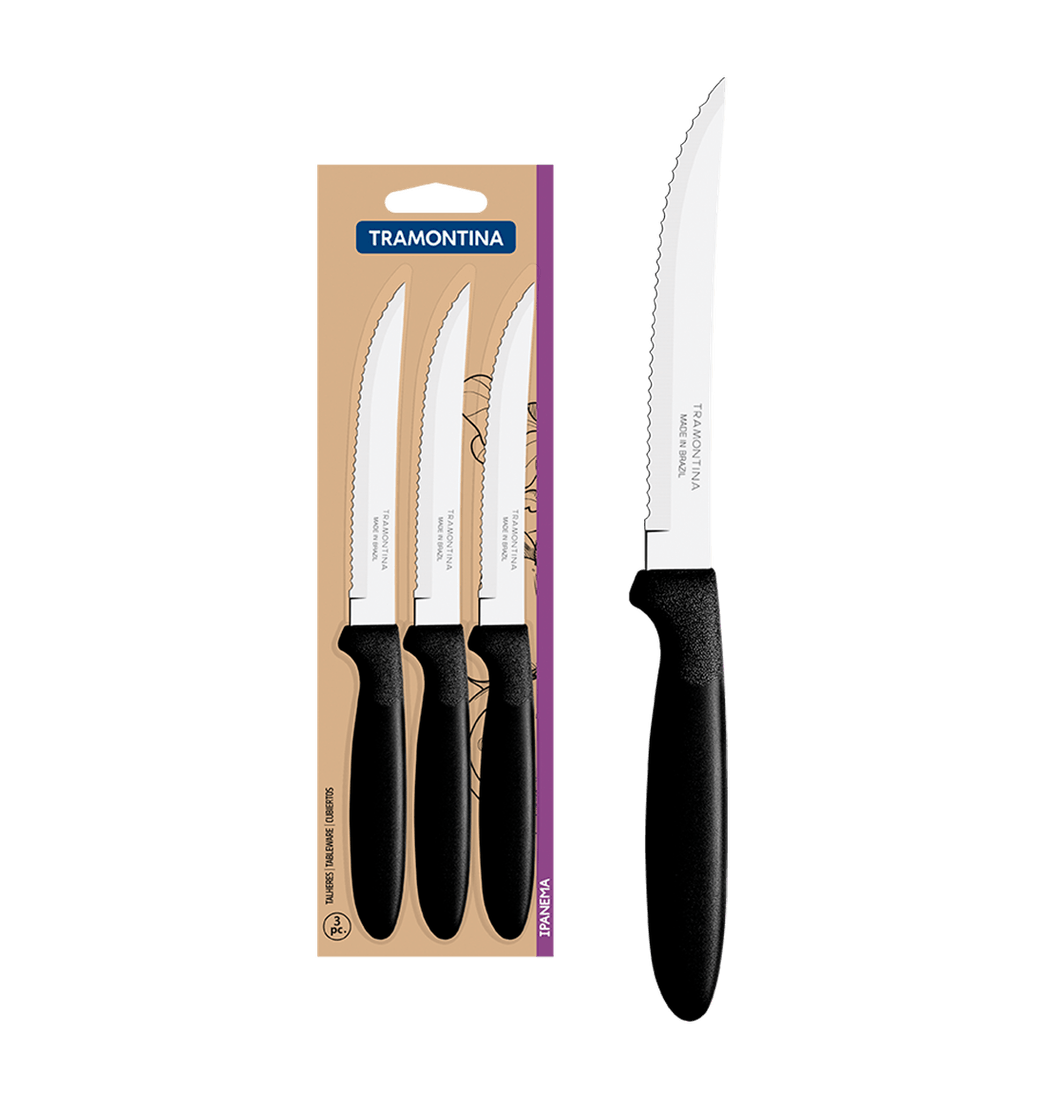 Juego de Cuchillos para Asado 3 Piezas Ipanema en Acero Inoxidable y Mangos Polipropileno Negro - Tramontina