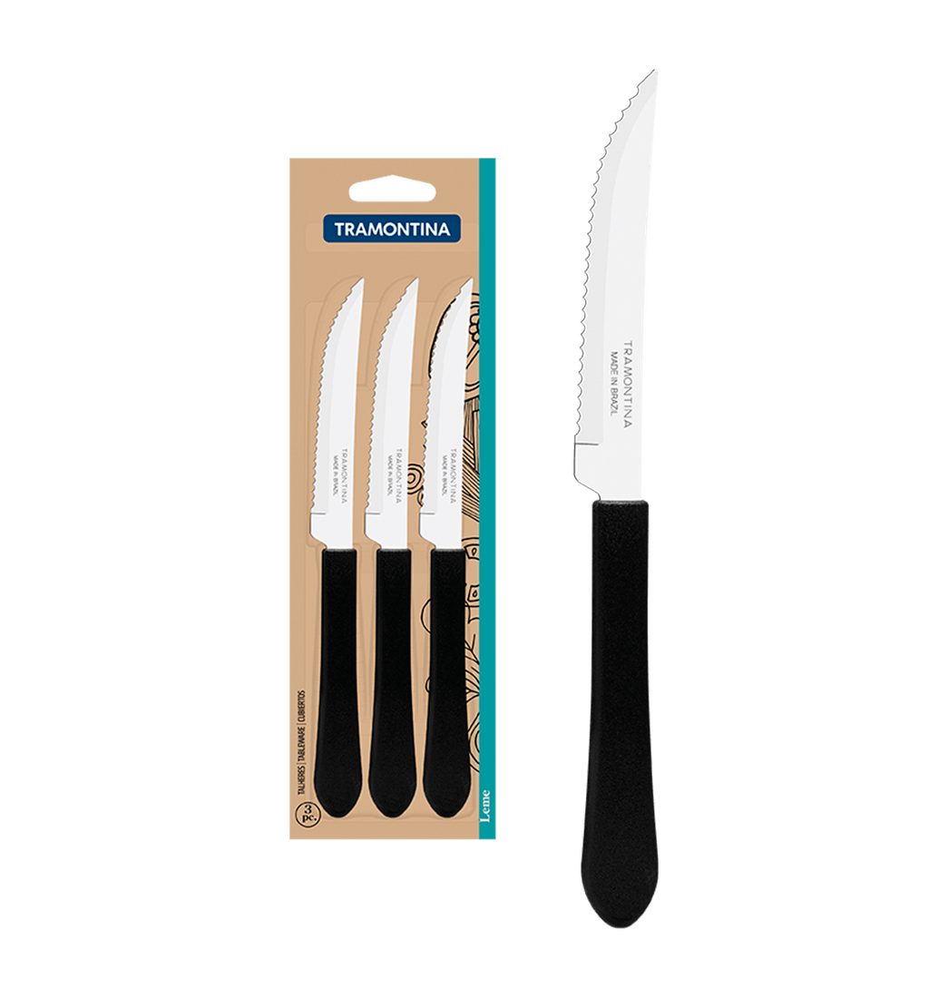 Juego de Cuchillos para Asado 3 Piezas Leme en Acero Inoxidable y Mangos Polipropileno Negro - Tramontina