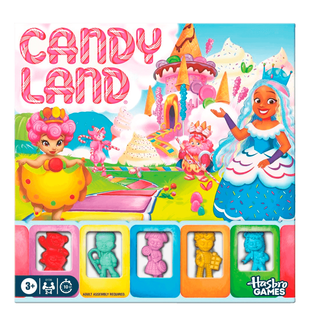 ¡Bienvenido al juego Candy Land! ¡En esta versión actualizada del clásico juego preescolar, los más pequeños eligen una figura de Explorador de Dulces y coloridos tokens de "caramelo" de la Bolsita de Maravillas, y viajan hacia el Castillo de Caramelo por el Camino Arcoíris! ¿A quién conocerán en el camino? ¿Cuál jugador llegará primero al castillo?