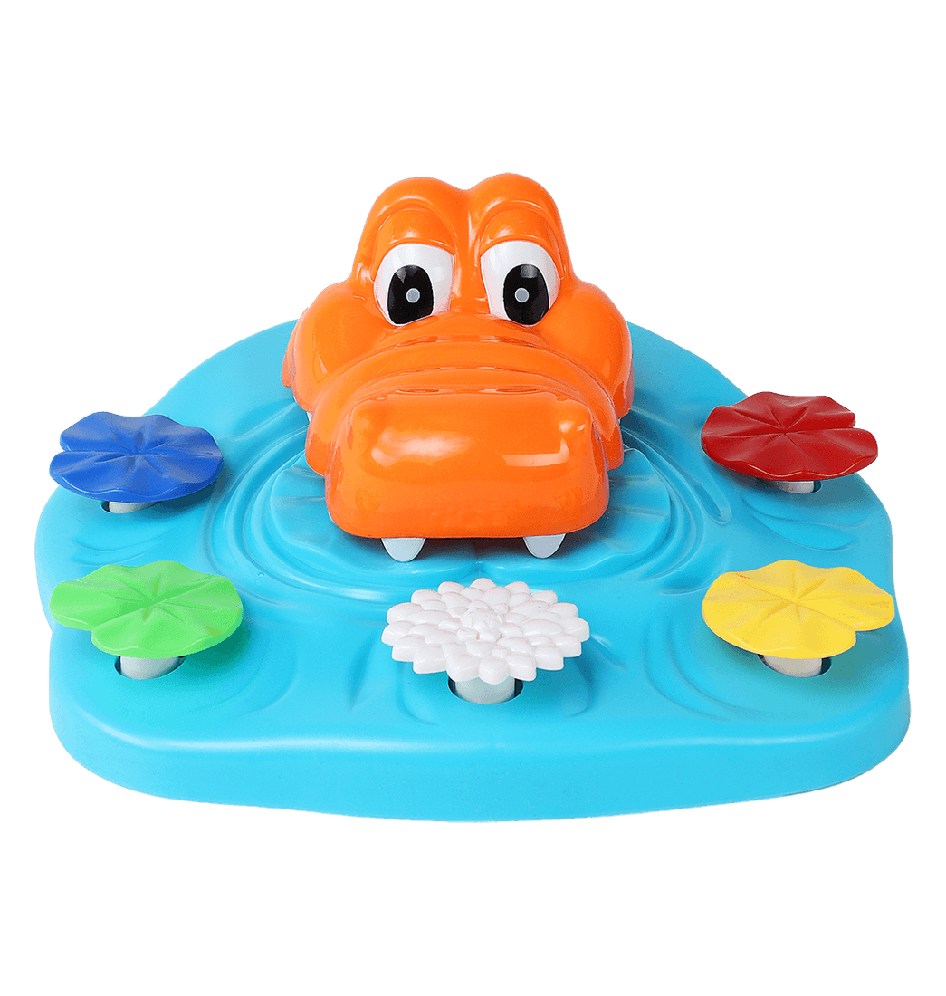Contiene: 1 cocodrilo., 1 base., 4 ranas de colores., 28 cartas de animales, 1 hoja de instrucciones.