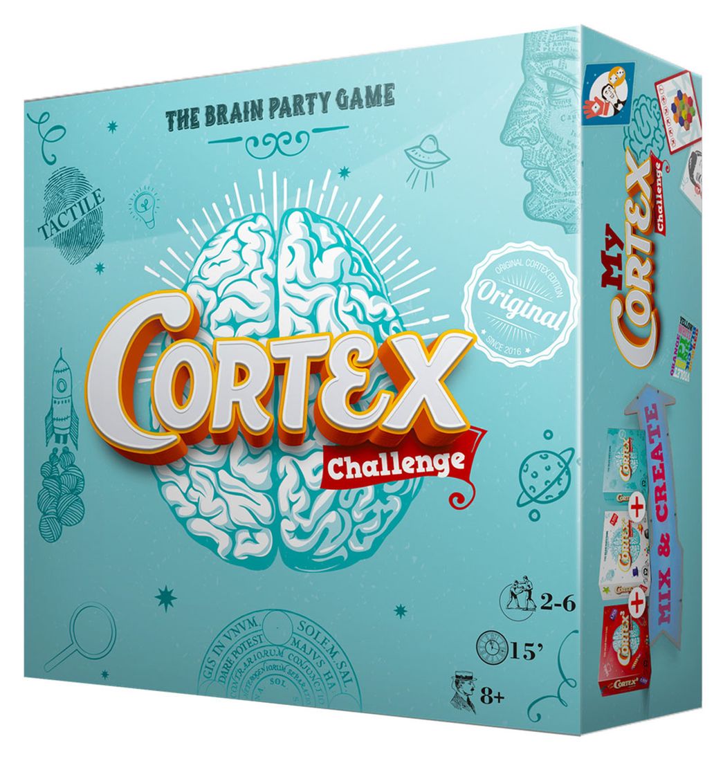 Incluye: 90 cartas de desafío, 10 cartas táctiles, 6 cerebros de cartón, reglamento.