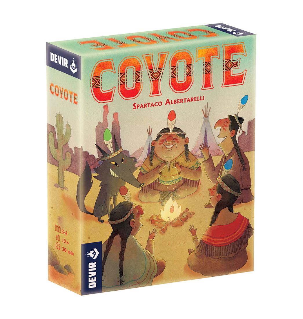 Coyote es un divertido juego de cartas para toda la familia publicado originalmente en el año 2003. El diseñador del juego es Spartaco Albertarelli, creador de juegos como Dust o Dice Race. Es un juego de bluffing (“faroleo”) para toda la familia, en la que los más pequeños de la casa disfrutarán en grande.