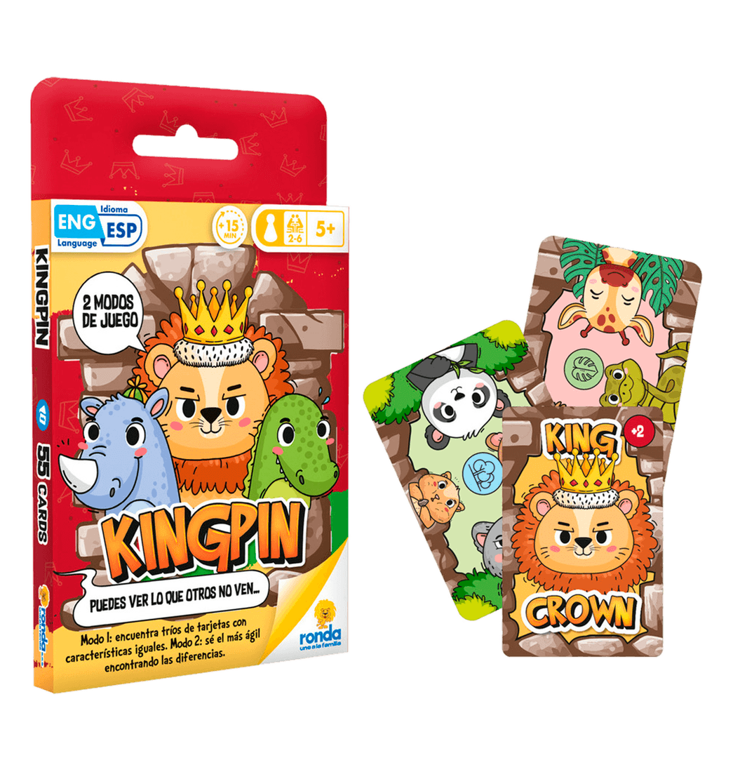 Divierte junto a amigos y la familia con este fabuloso Juego de Mesa Kingpin . Puedes ver lo que otros no ven... encuentra tríos de tarjetas con características iguales o sé el más ágil encontrando diferencias.