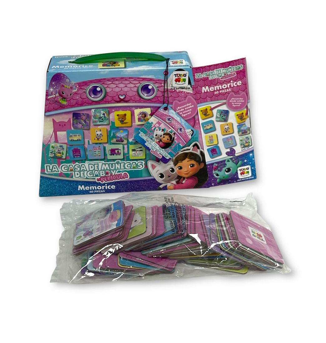 Este Juego de Mesa Memorice es un producto oficial de Gabbys Dollhouse diseñado para sumergir a los niños y niñas en el mágico mundo de la serie mientras disfrutan de una experiencia de juego única y enriquecedora.