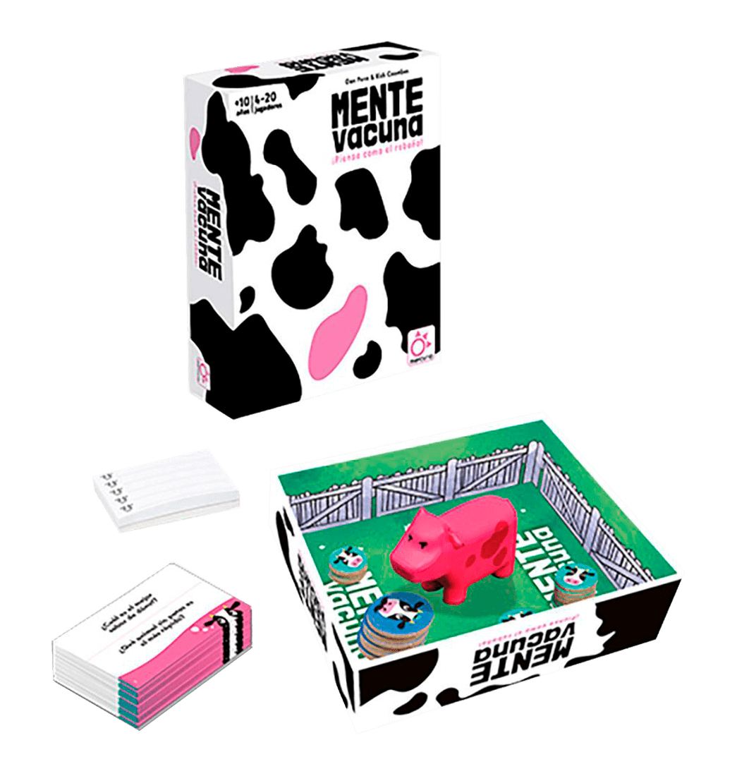 Mente Vacuna es un juego de mesa que desafía tu habilidad para pensar como parte del rebaño. ¿Es algo positivo? ¿Es algo negativo? No importa: lo verdaderamente divertido es meterte en la mente de la mayoría e intentar adivinar qué responderán los demás. ¡Ríete, sorpréndete y disfruta mientras sigues la lógica del grupo!