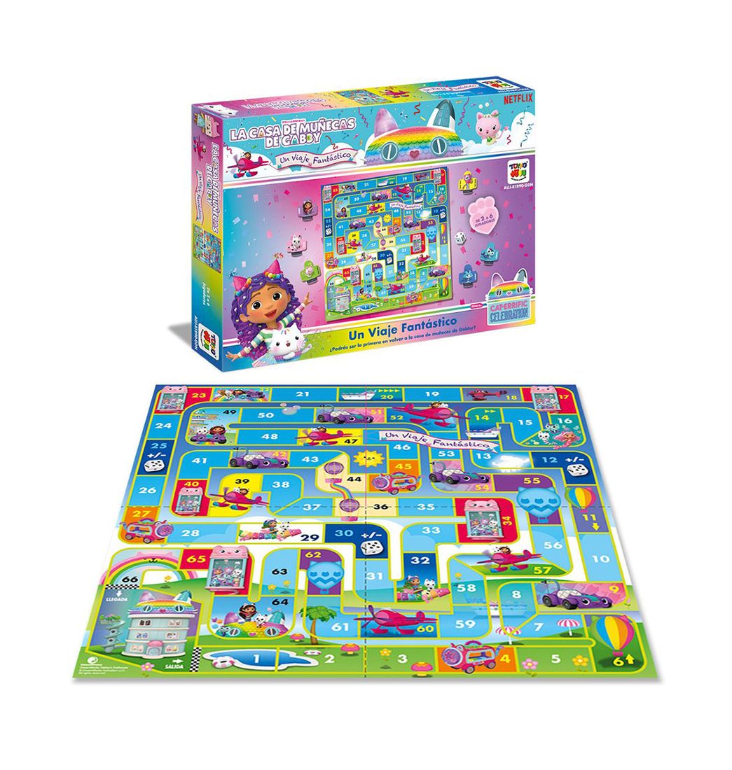 El Juego de Mesa Un Viaje Fantástico es un producto oficial de Gabbys Dollhouse diseñado para sumergir a los niños y niñas en el mágico mundo de la serie mientras disfrutan de una experiencia de juego única y enriquecedora.