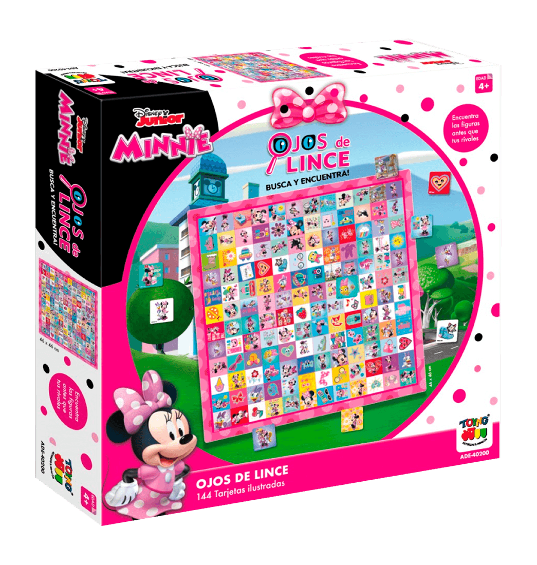 Divertido juego de mesa Ojos de Lince, inspirado en el famoso personaje de Minnie Mouse. Con este Juego de Mesa Ojos de Lince con imágenes de sus personajes favoritos, podrás ofrecerles a tus hijos interminables horas de entretención y risas.