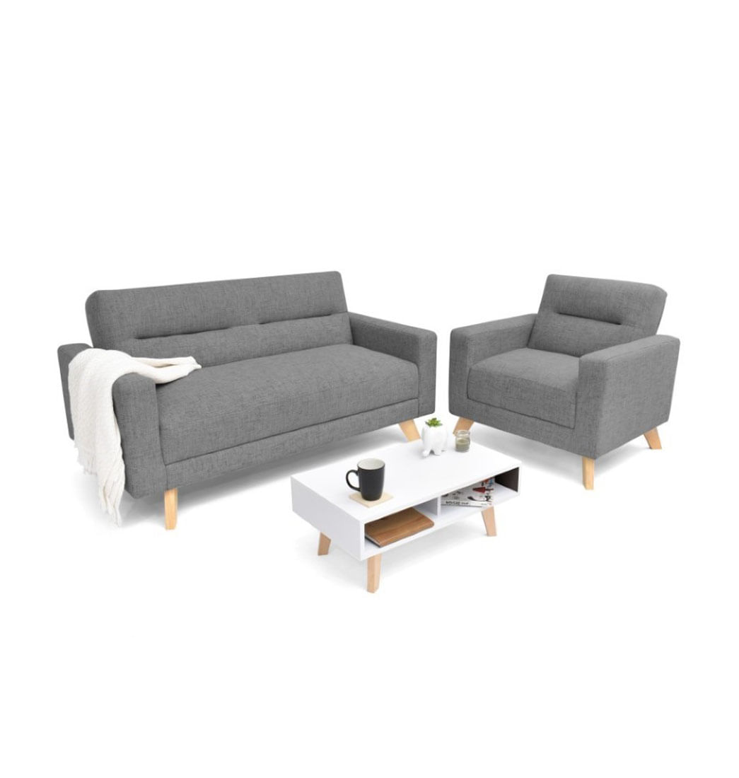 - Incluye: 1 Sofá, 1 poltrona y 1 mesa de centro.