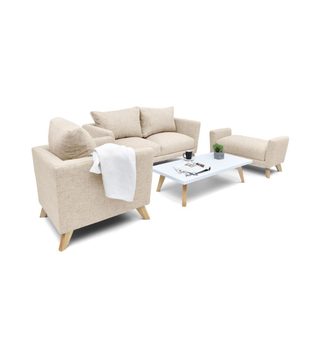 - Incluye: 1 Sofá, 1 poltrona, 1 puff y 1 mesa de centro.