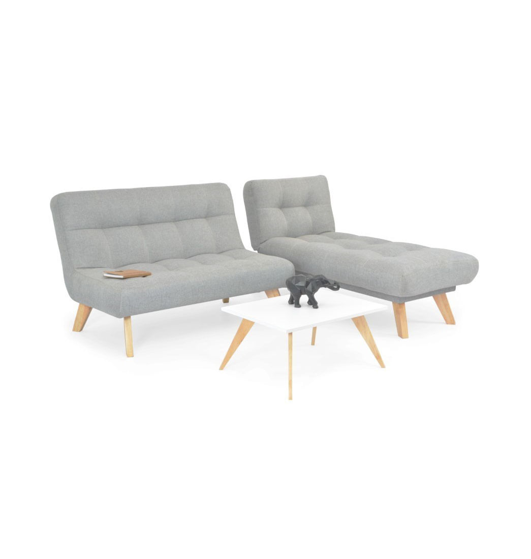 - Incluye: 1 Sofá, 1 Chaise Longue y 1 Mesa de Centro. No incluye elementos decorativos.