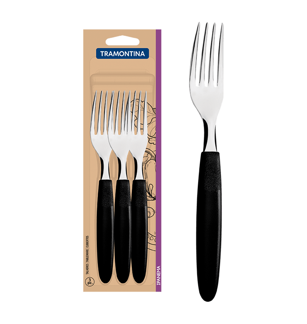 Juego de Tenedores de Mesa 3 Piezas Ipanema en Acero Inoxidable y Mangos Polipropileno Negro - Tramontina