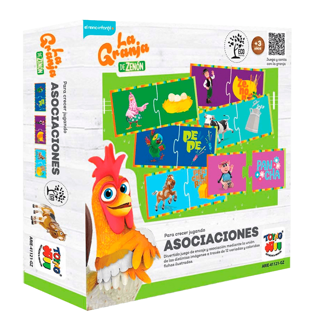 Este divertido Juego Educativo esta inspirado en La Granja de Zenon y esta recomendado para niños en edades comprendidas entre 3 a 7 años, en donde podrán aprender y jugar de forma lúdica con las tarjetas de asociaciones con imágenes ilustradas. Todos nuestros productos son fabricados siguiendo altos estándares de calidad y en fábricas que cumplen con regulaciones internacionales.