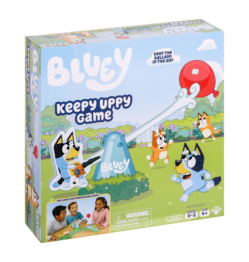 Ahora puedes jugar a Keepy Uppy con tus amigos y familiares con el juego Bluey Keepy Uppy. El globo gira y gira alrededor del tablero en este divertido juego motorizado lleno de acción. ¡Los jugadores deben ser rápidos para golpear el globo y mantenerlo en el aire usando sus palas!