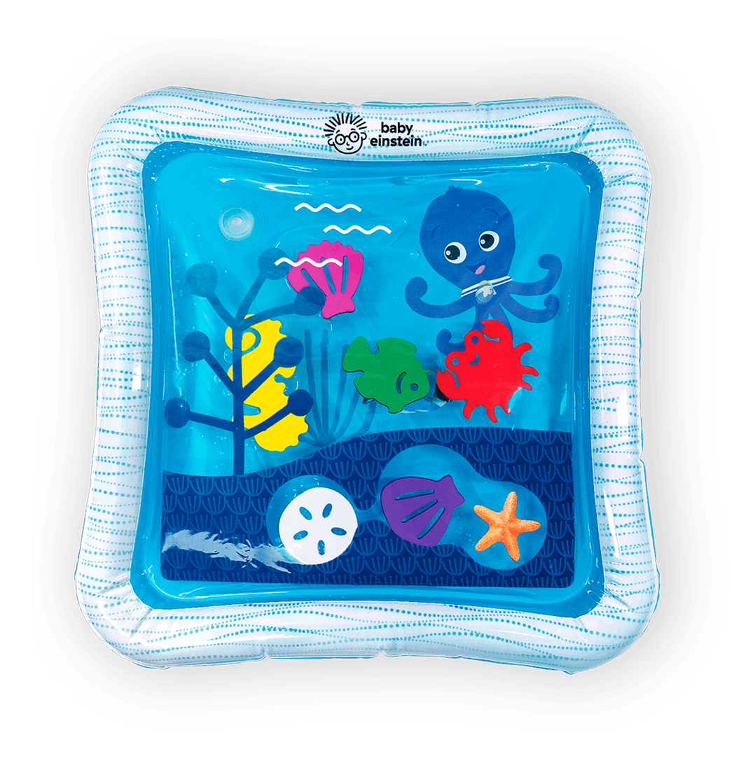 La exploración submarina está al alcance de tu bebé con la colchoneta de agua Ocean of Discovery Tummy Time de Opus, que presenta al pulpo Opus de Baby Einstein. Simplemente llena el centro de la colchoneta de juego con agua e infla el borde exterior con aire.