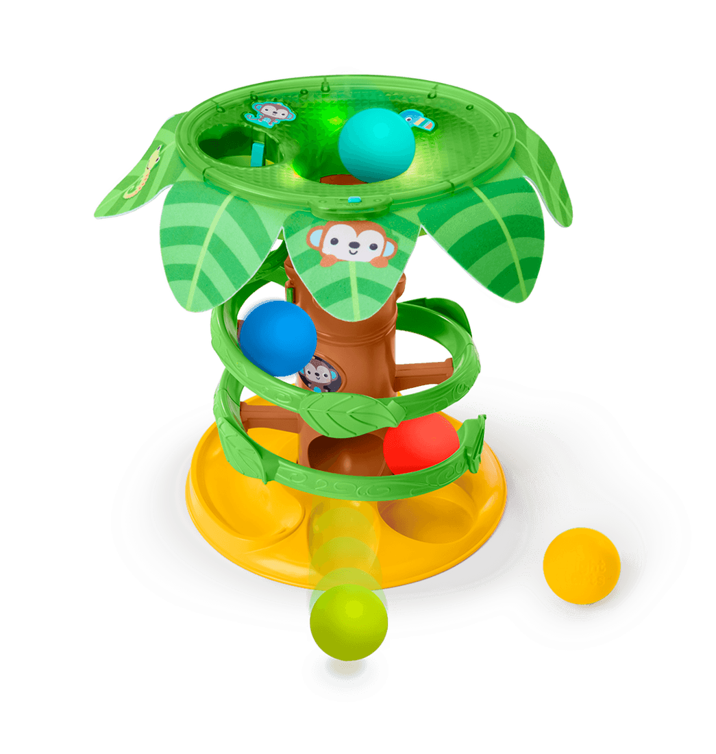 ¡Es divertido perseguir pelotas en espiral con el Juguete de Actividades Tropical de Bright Starts! Tu bebé o niño pequeño se divertirá mucho mientras deja caer y persigue las 5 pelotas de colores incluidas.