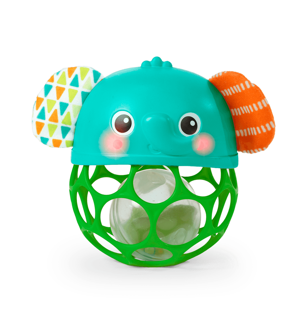 La pelota sonajero en forma de maní en la “panza” del elefante hace ruido cuando se agita; 2 orejas arrugadas para estimulación táctica; colores brillantes y múltiples texturas para deleitar al bebé.