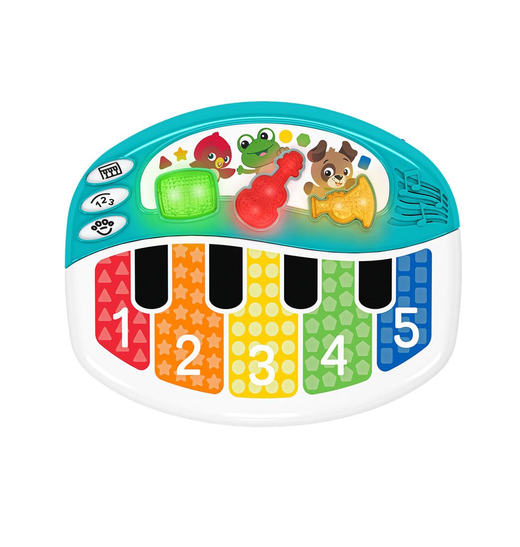 Este piano, un juguete Baby Einstein muy valorado, tiene un diseño fácil de usar para los padres, se limpia fácilmente y cuenta con control de volumen.