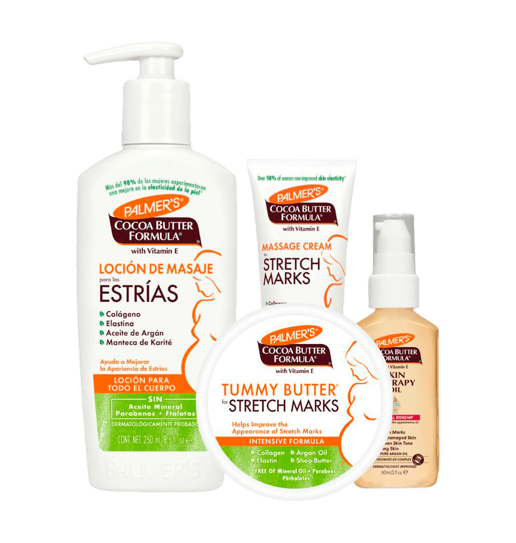 Este fabuloso kit completo de productos para el cuidado de la piel durante el embarazo para ayudar a reducir la aparición de estrías. La fórmula de todos los productos de la línea de estrías incluye toda la fuerza de combinaciones de ingredientes naturales.