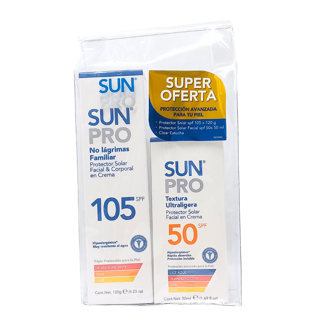 Incluye: Kit Protector Solar Sun Pro SPF 105 y Protector Solar Sun Pro SPF 50.
