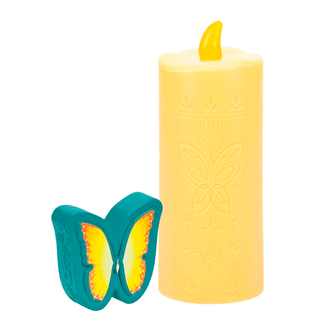 Haz que tu espacio sea mágico con esta vela Encanto que cambia de color. Viene con un control remoto en forma de mariposa para que puedas encenderlo y apagarlo fácilmente desde el otro lado de la habitación.
