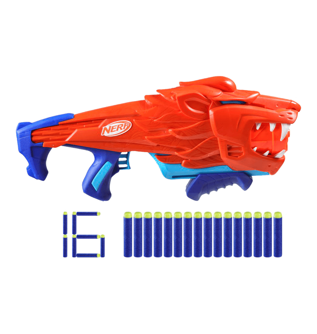 ¡El lanzador Nerf Junior Wild Lionfury cuenta con un llamativo diseño de León que reproduce la apariencia del feroz felino con sus brillantes colores e increíbles detalles! Este juguete lanzador Nerf incluye 16 dardos flexibles de espuma Nerf Elite 2.0.