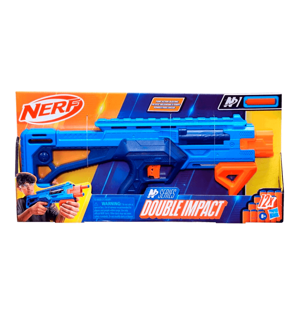 De los creadores del dardo de espuma, la marca Nerf revela la nueva fase en la evolución de los dardos con los dardos Nerf N1 Series, ¡ofreciendo extrema precisión, velocidad y distancia! El lanzador Nerf N Series Double Impact cuenta con acción de bombeo para que sea más divertido lanzar dardos.