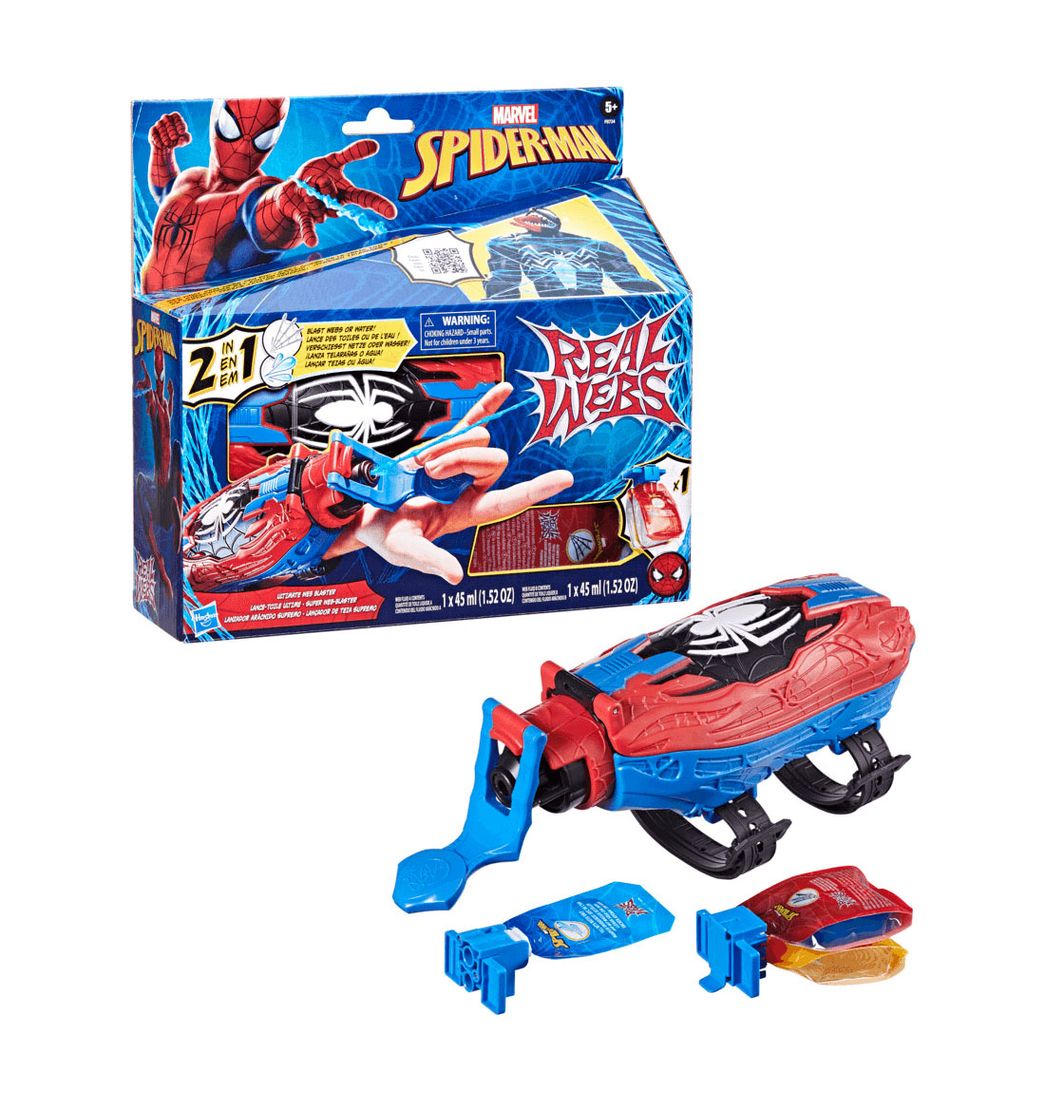¿Listo para lanzar telarañas realísticas al igual que Spider-Man? ¡El Lanzador arácnido supremo cuenta con un líquido innovador que se convierte en telaraña de gel con la que puedes jugar! Este avanzado lanzador permite 3 tipos de juego distintos.