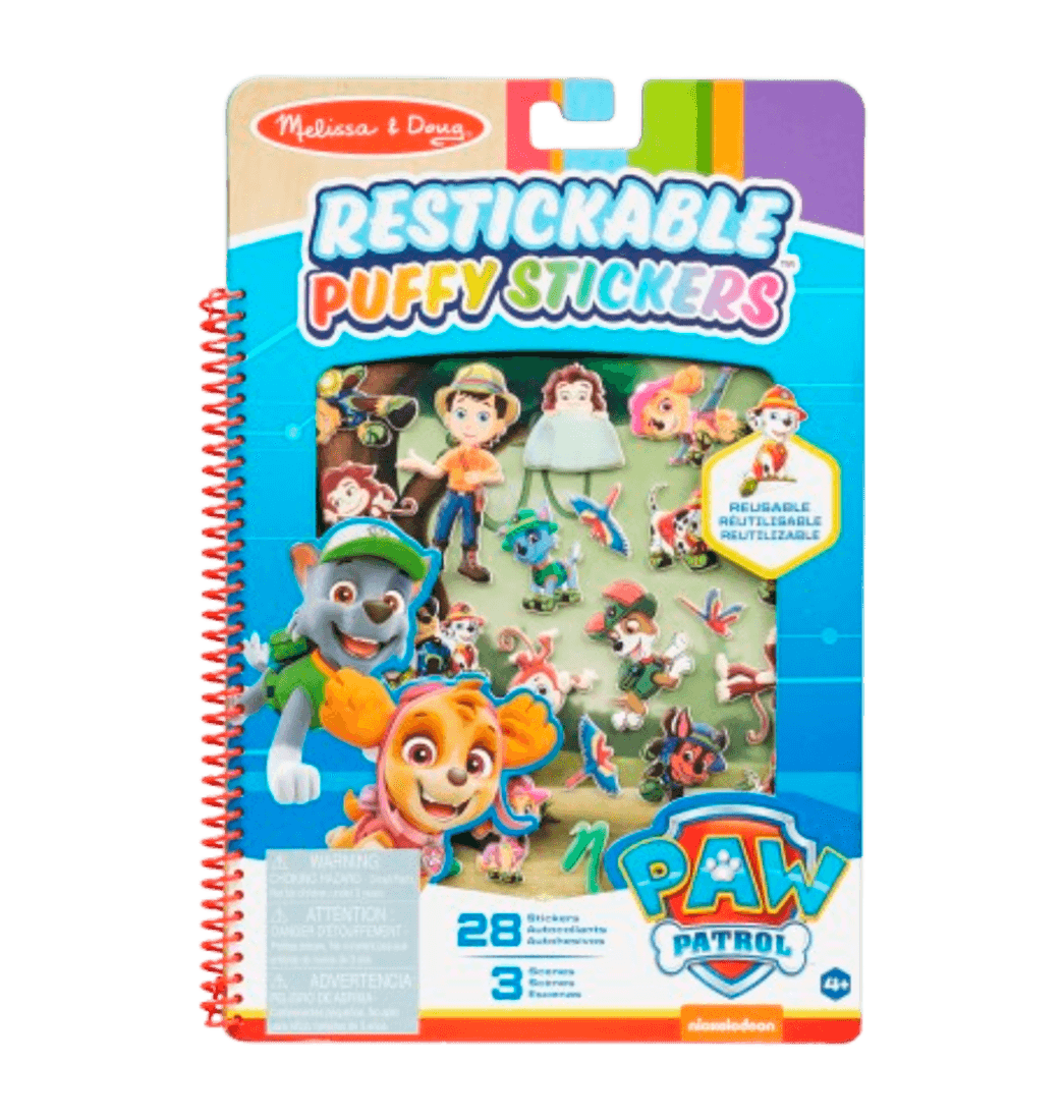 ¡Las pegatinas esponjosas readhesivas permiten a los niños crear aventuras de la Patrulla Canina una y otra vez! Cuente innumerables historias con estas divertidas pegatinas y escenas dimensionales. Simplemente coloca las pegatinas esponjosas con el tema de la jungla en las brillantes escenas desplegables.
