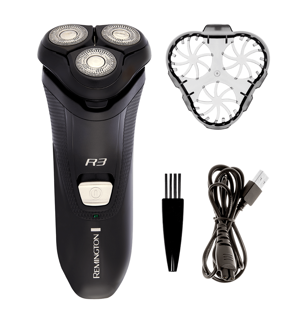 Transforma tu afeitado con la Afeitadora Rotativa Remington Style Series R3, R3011. Sus cuchillas flexibles y cabezal pivotante se adaptan perfectamente al contorno facial, proporcionando un contacto máximo con la piel.