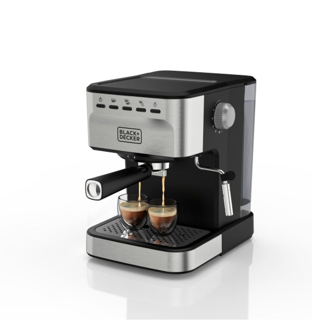 La Máquina de Espresso BLACK+DECKER cuenta con funciones semiautomáticas: espresso, cappuccino, latte y americano. Diseñada con bomba de 20 bares de presión y varilla de potente vapor portafiltro de 2 tamaños para espresso sencillo o doble.