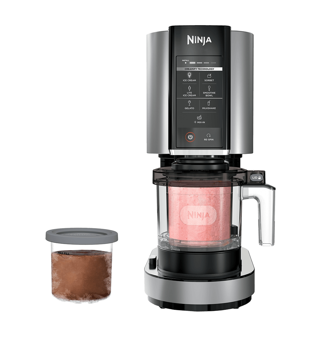 La Máquina para Hacer Helados Ninja Creami transforma bases sólidas congeladas en helados, sorbetes, batidos y más con solo tocar un botón. Creamify Technology de Ninja permite que la Máquina para Hacer Helados descomponga un bloque uniformemente congelado en una textura increíblemente suave y cremosa en minutos.