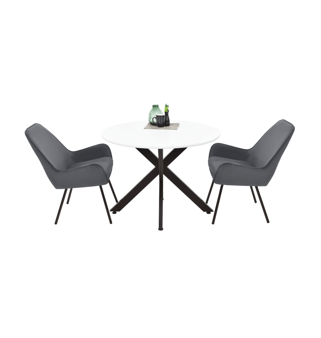 Mesa 4 Puestos luxor y 2 sillas noruega tela gris - Hogar Venecia