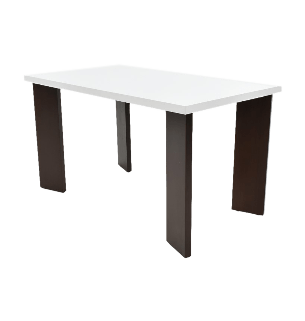 - La Mesa de Comedor Sevilla cuenta con bases elaboradas en madera pino inmune al gorgojo pintadas en color wengue y superficie en madera aglomerada color blanco.