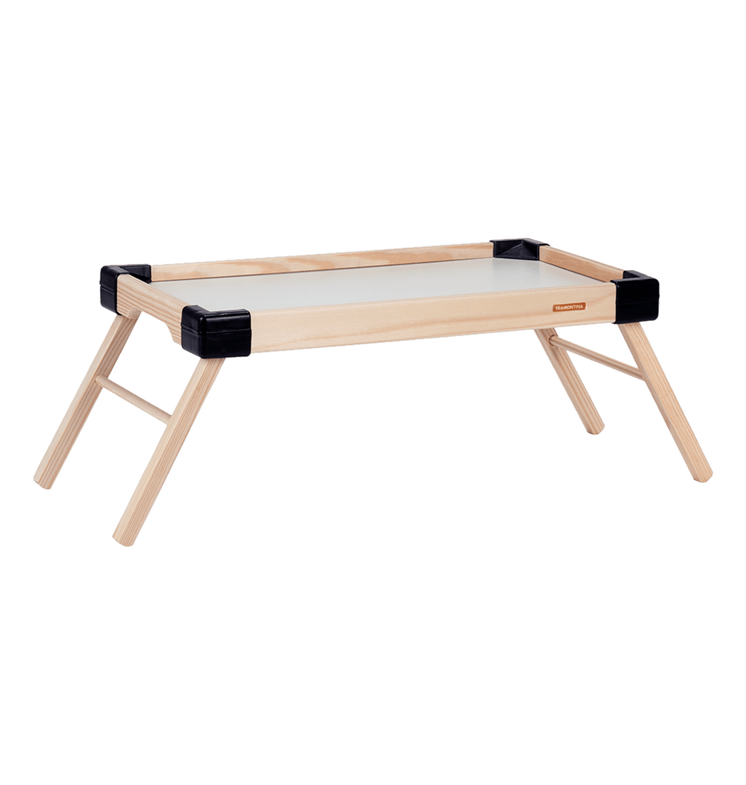 Esta bandeja Tramontina Small con patas plegables y estructura en madera maciza, es la elección ideal para servir un delicioso desayuno lleno de variedades. Cuenta con un acabado natural y cantoneras de color negro, lo que asegura un diseño aún más moderno.
