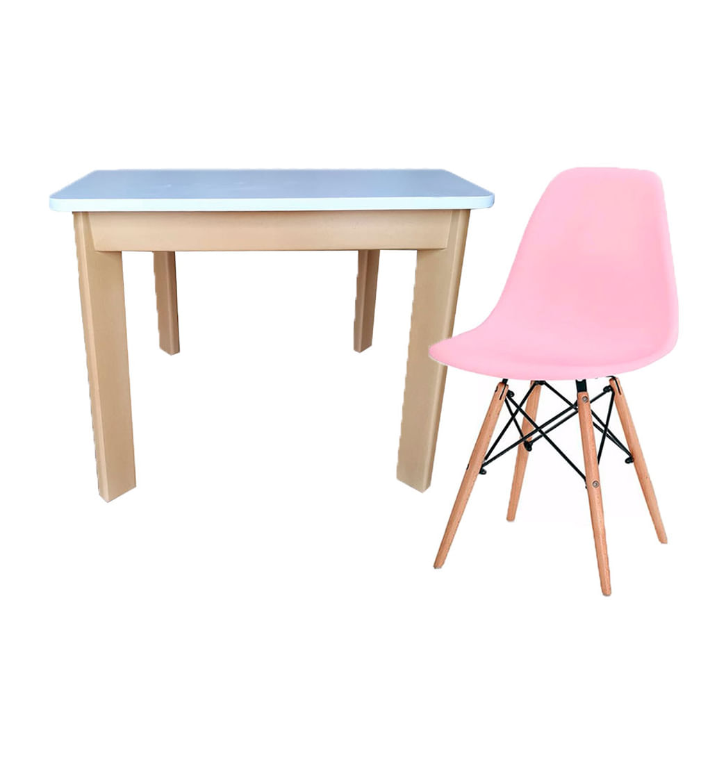 Mesa Infantil Cuadrada + Silla Eames Kid Ekonomodo - Rosado