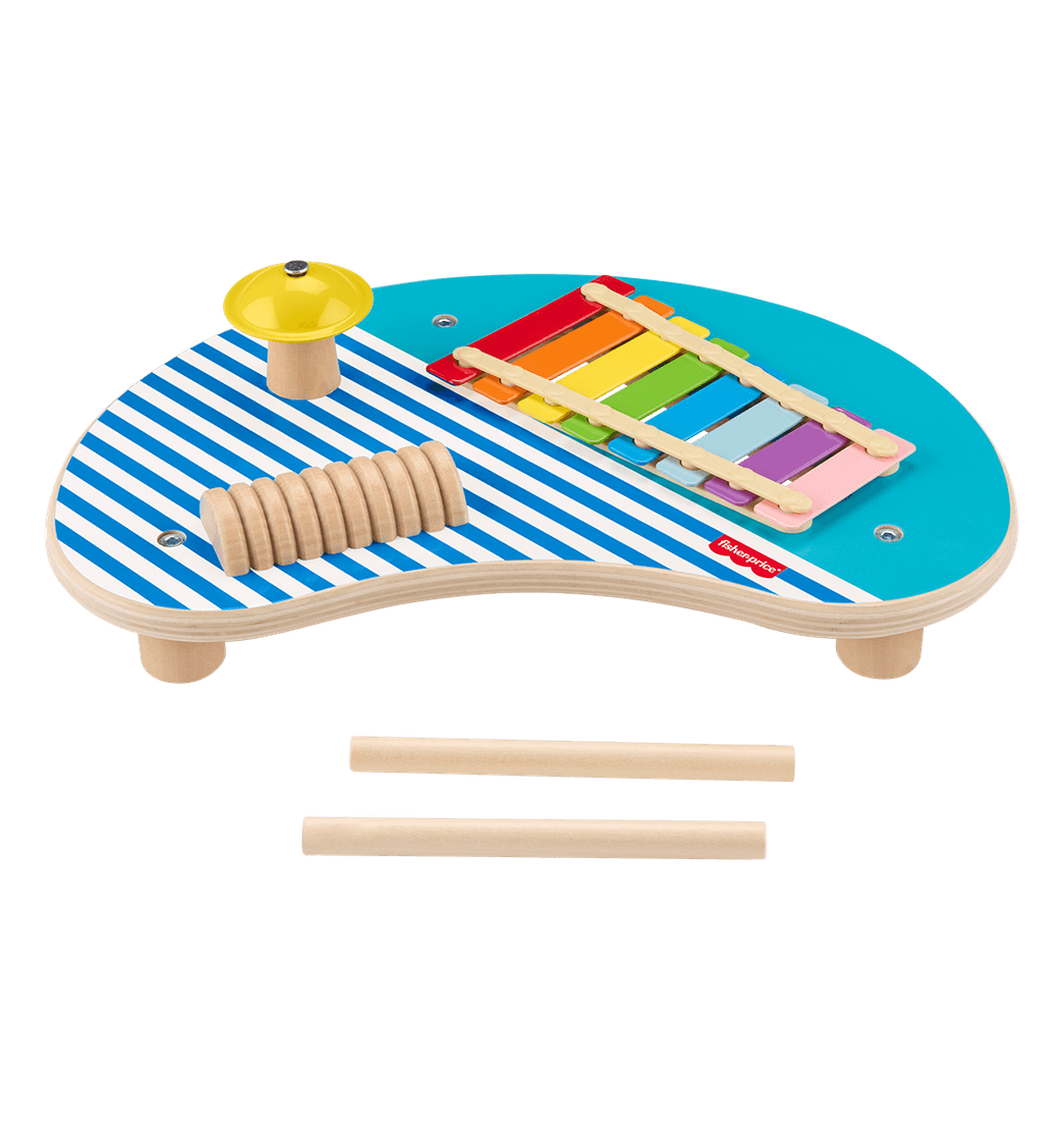 La Mesa Musical de Actividades de Madera de Fisher-Price combina 3 instrumentos de percusión para crear un divertido juguete musical. Deja que tu pequeño encuentre su ritmo y ejercite su motricidad fina usando los mazos para tocar el xilófono, el platillo y el güiro.