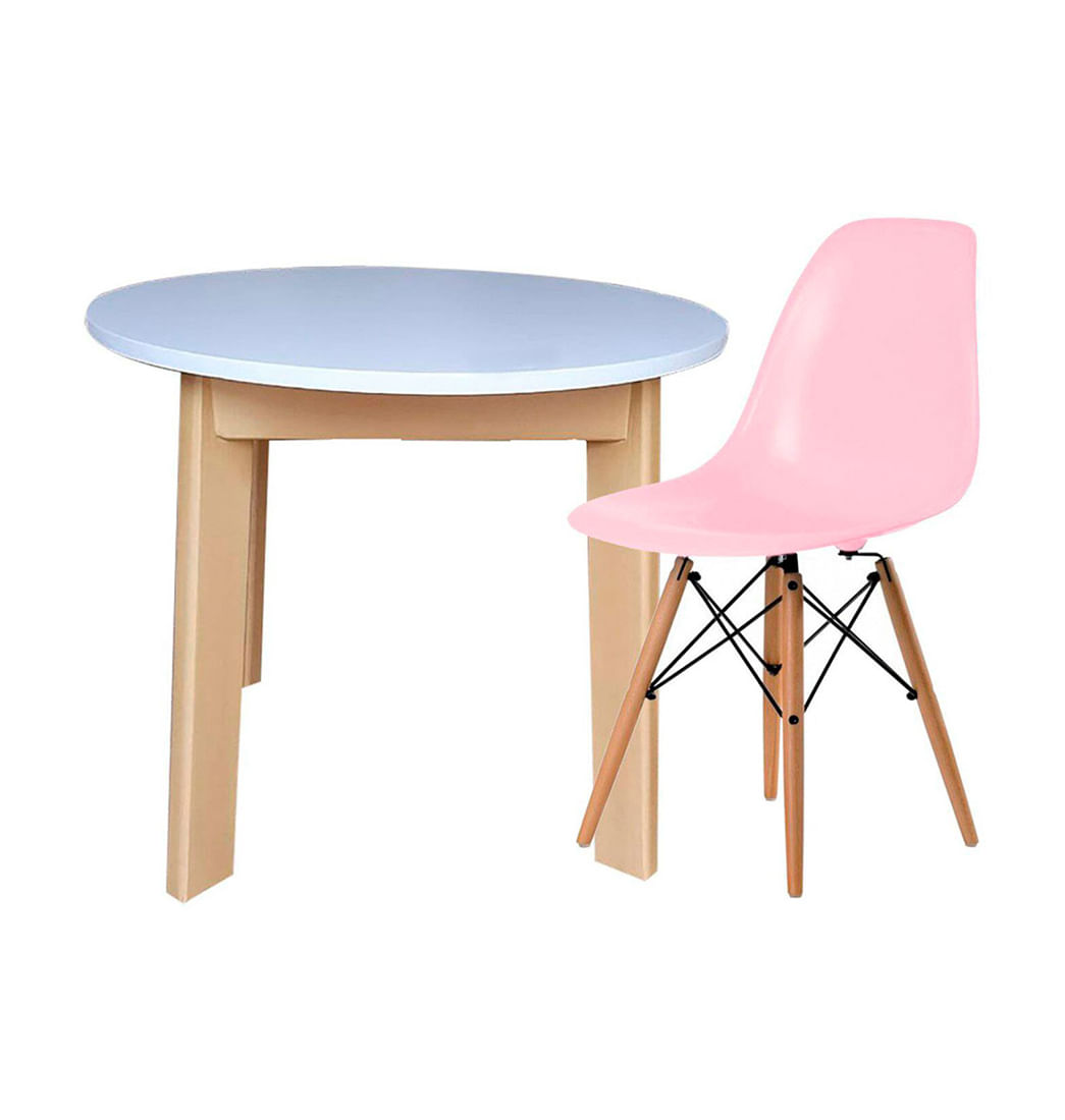 Mesa Redonda Infantil + Silla Eames Kids Ekonomodo - Rosado