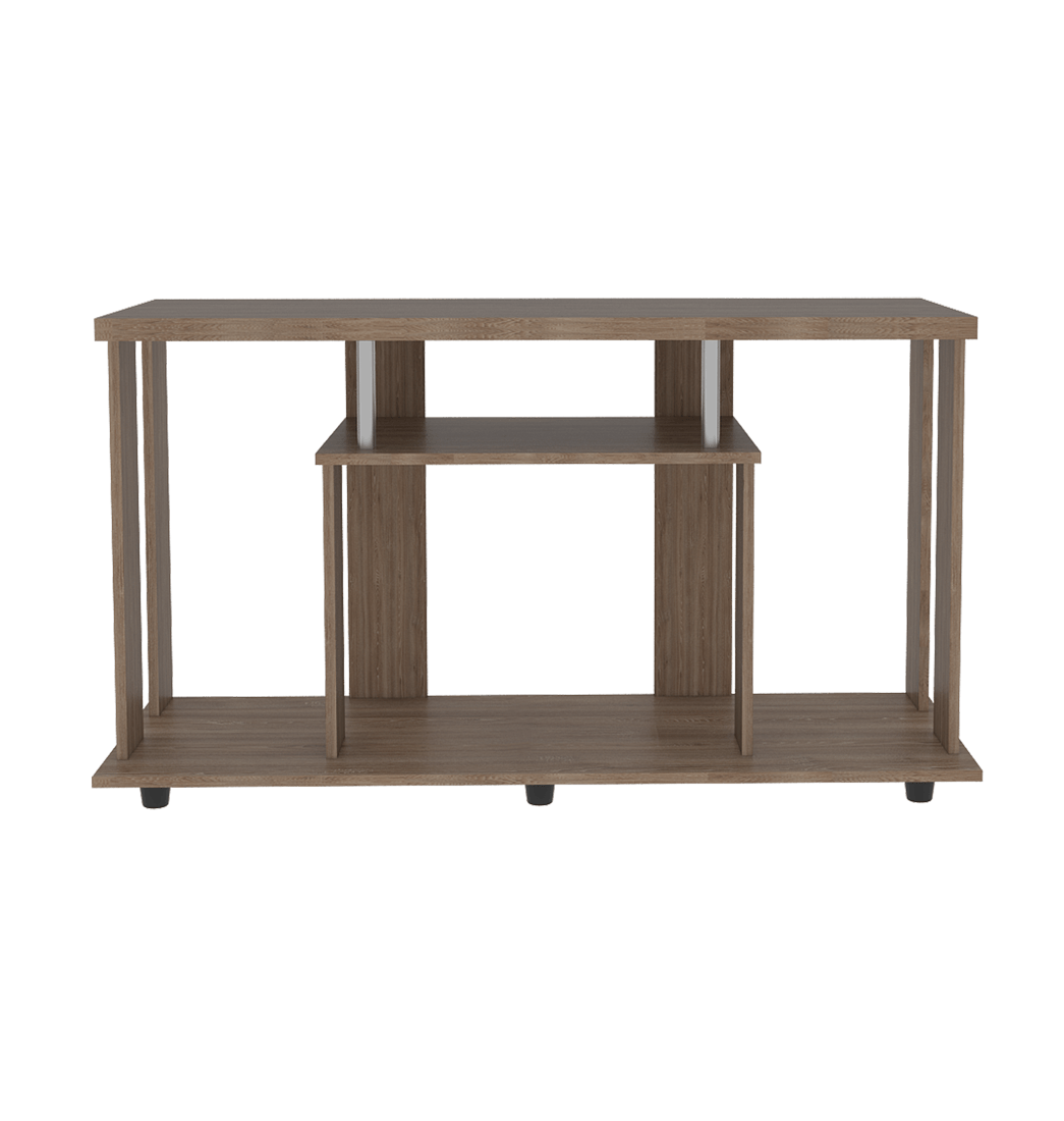 Mesa para televisión hecha de madera aglomerada de 15mm. Cuenta con un espacio superior para televisores de hasta 50", espacio para ubicar equipo de audio y video, patas plásticas para fácil desplazamiento, y lo mejor es que es de fácil instalación. ¡Anímate y adquiérela ahora!.