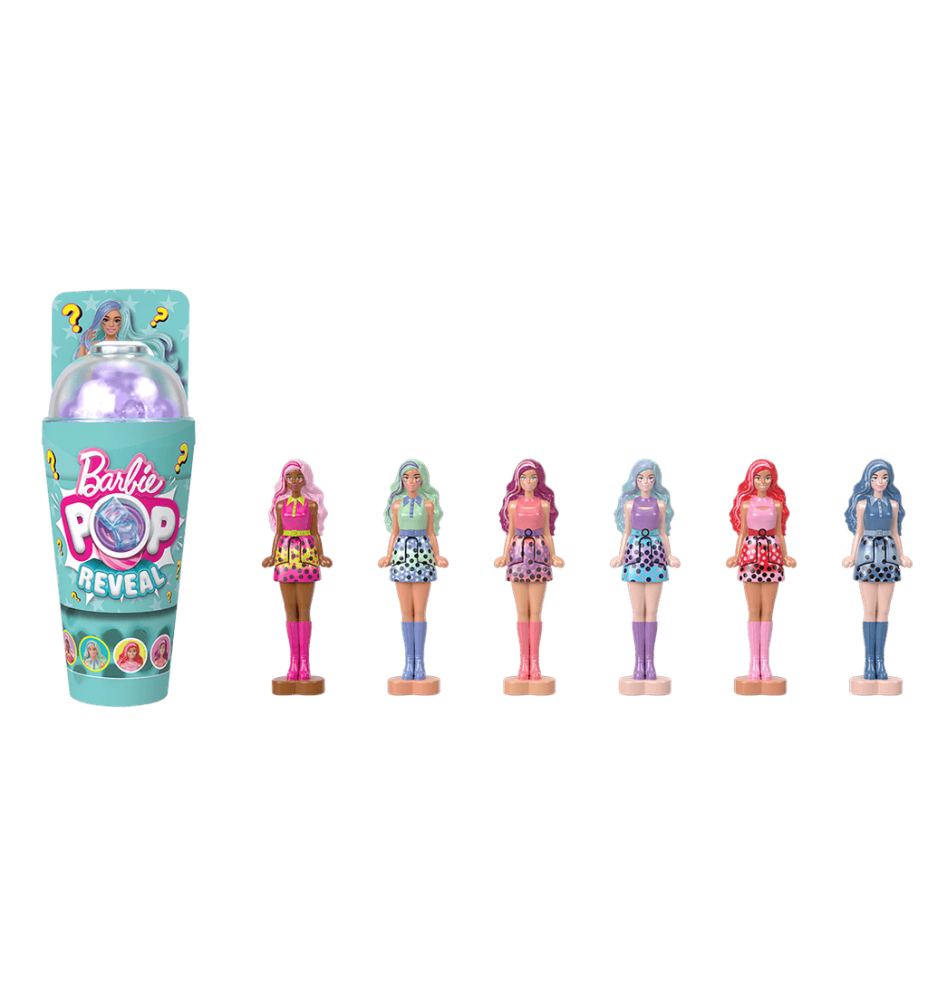 Desenrosca la tapa del minivaso de bebida y pica el compuesto sensorial con el popote para disfrutar de una diversión épica. Retira el compuesto para descubrir una minimuñeca Barbie. ¿Qué muñeca descubrirás?
