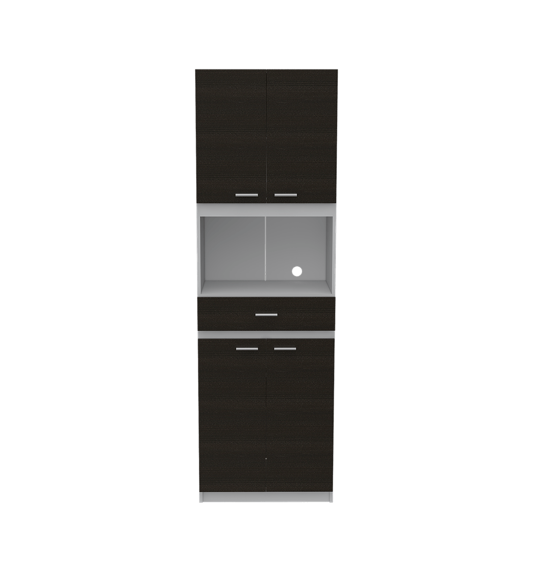 Grande Módulo para Microondas y cocina esta hecho de madera aglomerada de 15mm, cuenta con espacio para horno microondas, su diseño viene con cuatro puertas abatibles, compartimientos superiores e inferiores para guardar alimentos, manijas metálicas, cajón central multiuso con corredoras deslizables.