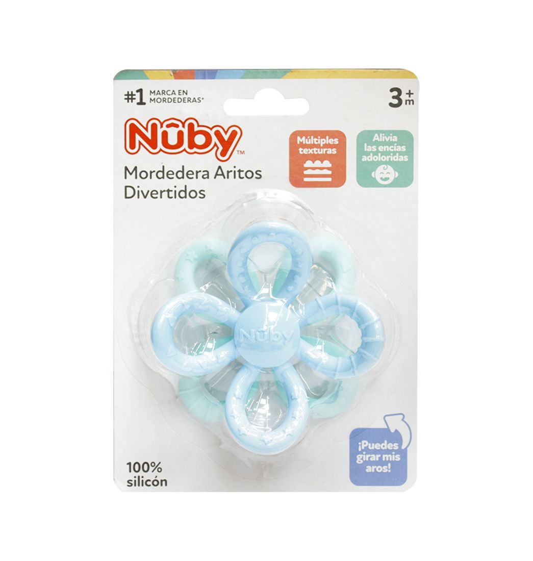 Mordedor Silicona Aritos Divertidos Flor Geo Azul/Verde - Nuby