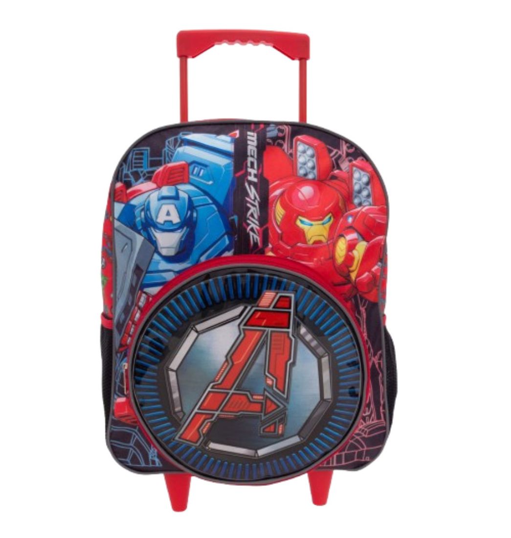 Este fabuloso Morral de Avengers cuenta con doble compartimiento, bolsillos laterales y ahora con rueditas y palanca para sostener. Su motivo de los vengadores será la sensación en el colegio y te permitirá distribuir tus útiles de una forma práctica y ordenada.